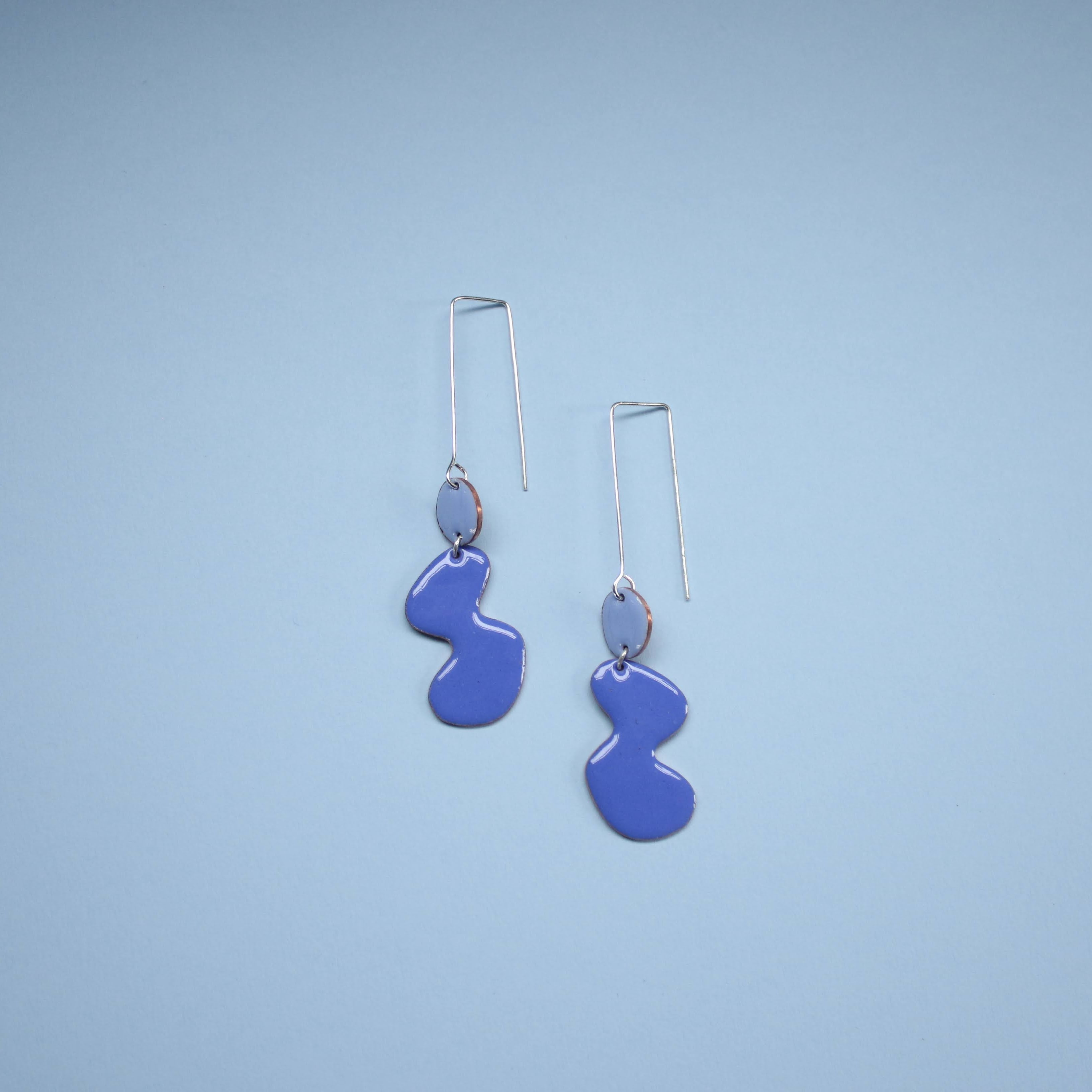 Blue enamel squiggle statement earrings. Handmade with recycled sterling silver and copper.