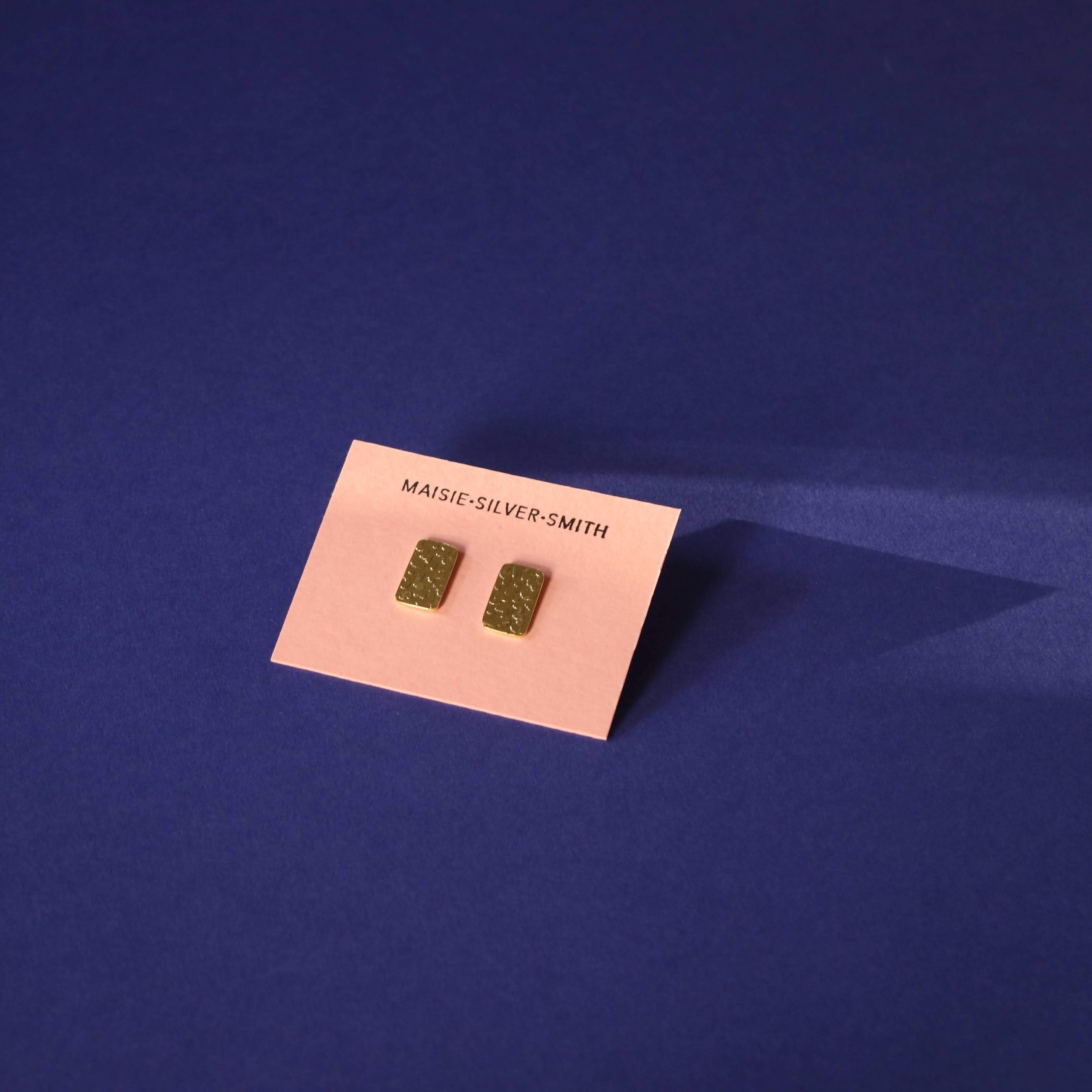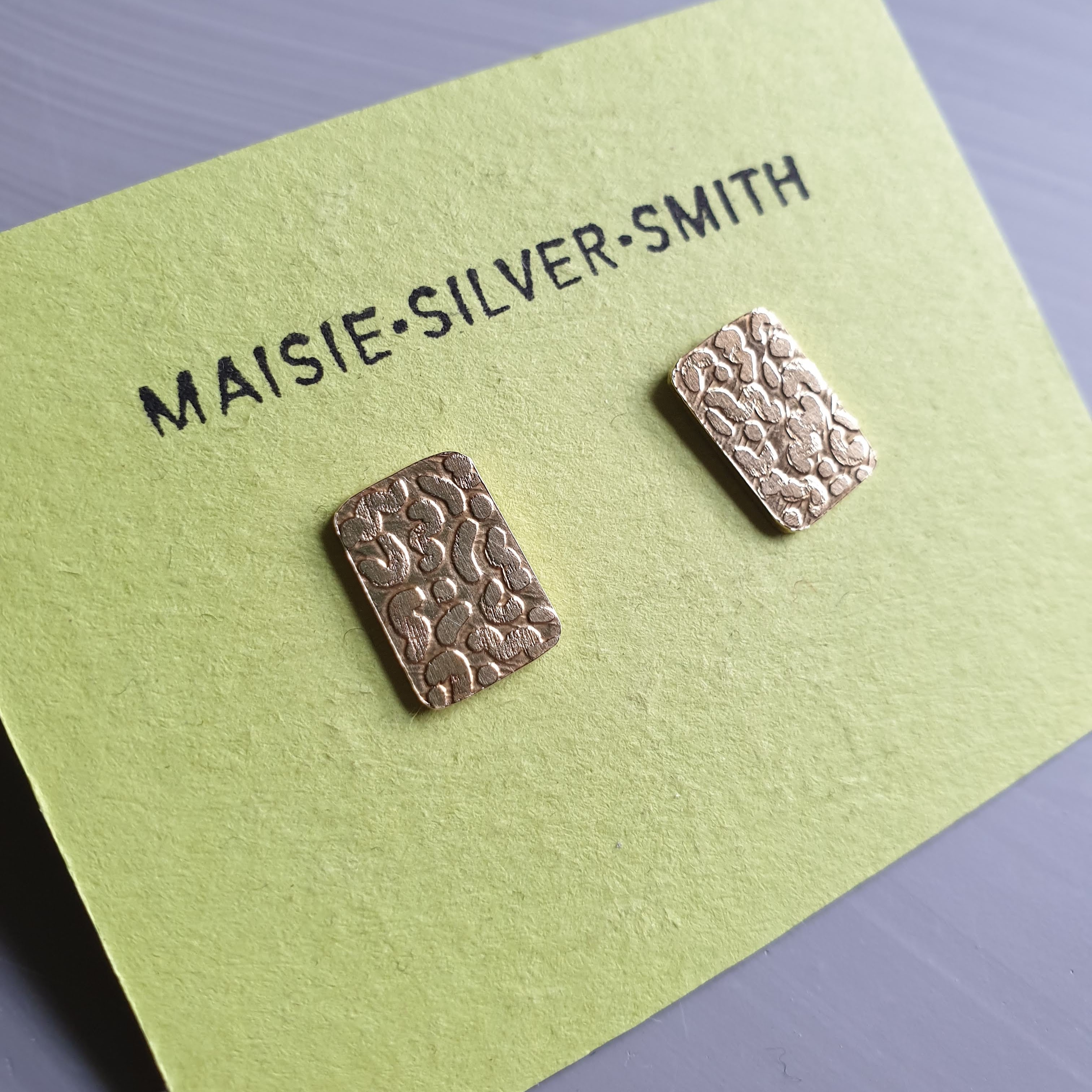 Handmade etched brass studs with sterling silver ear post and butterfly. Hand etched with a squiggle pattern.