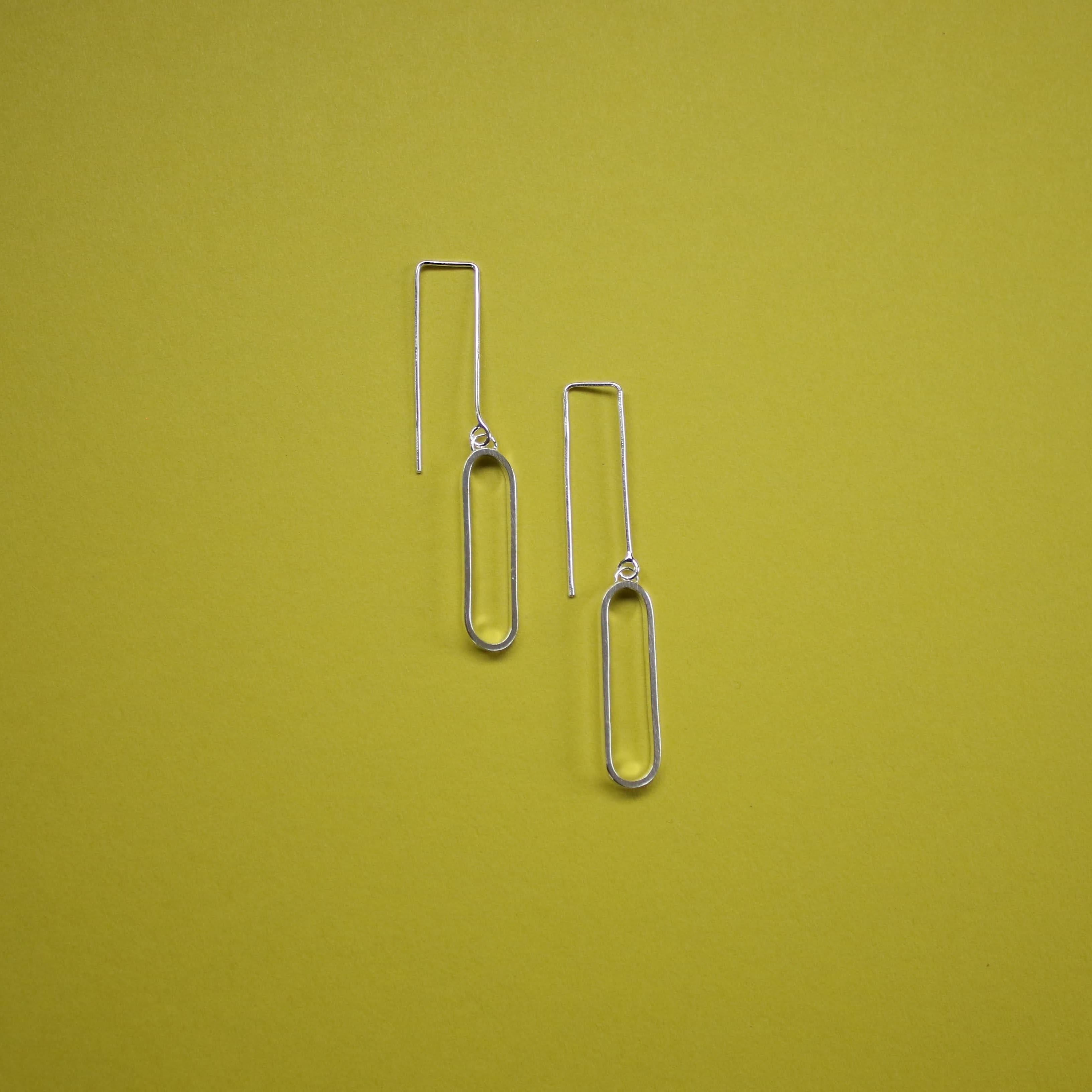 Sterling silver oval stud earrings with brushed finish. Handmade with recycled silver.
