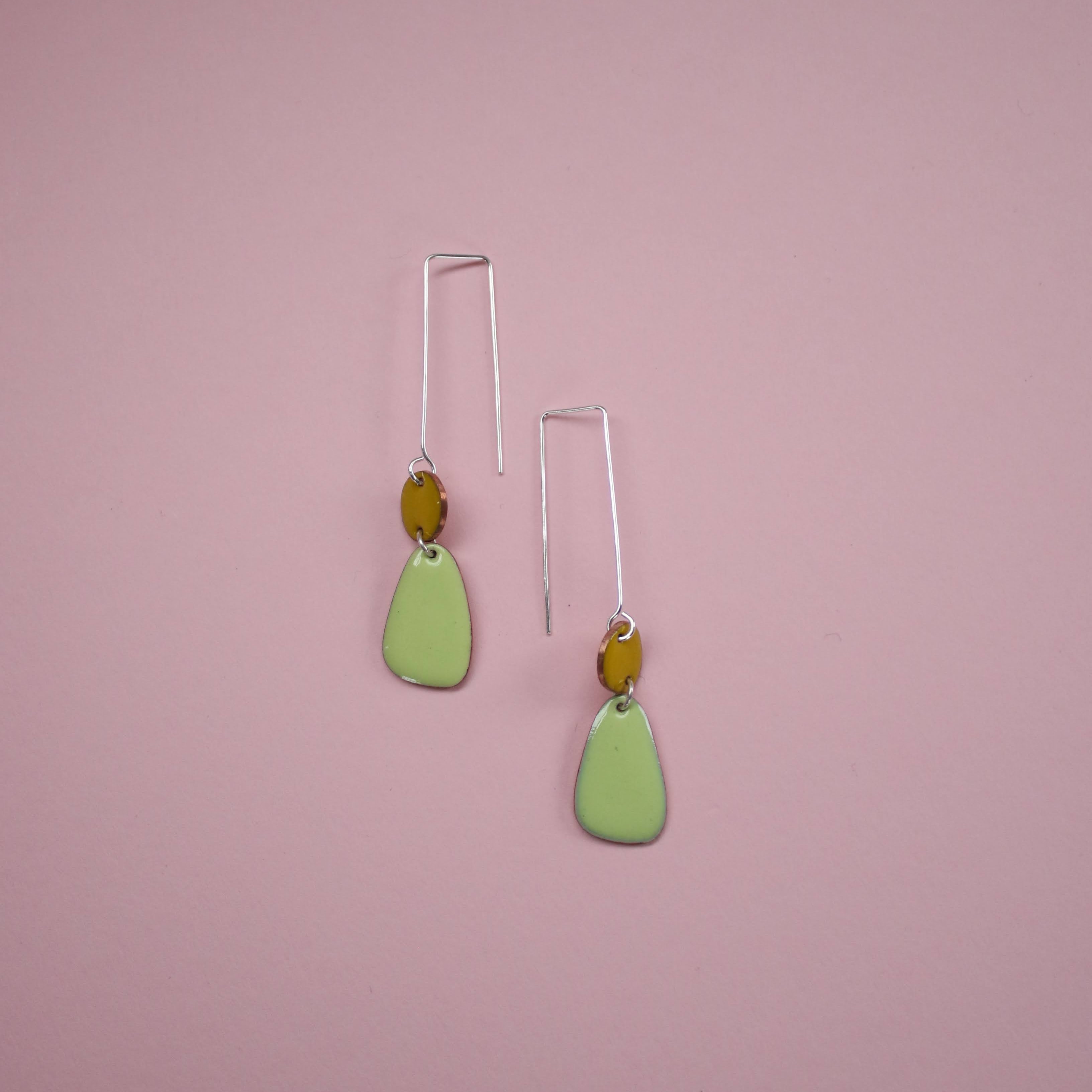 Yellow and green enamel statement earrings. Finished with a modern square hook.